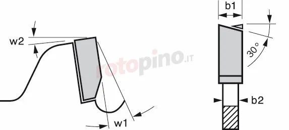 - Angolo di spoglia inferiore w2 (in °): 15